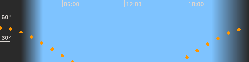 | Aufgang | 17:10 Uhr im Osten (αAz = 72,8°) |