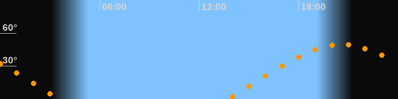 | Aufgang | 13:42 Uhr im Osten (αAz = 72,8°) |