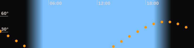 | Aufgang | 13:36 Uhr im Osten (αAz = 72,8°) |
