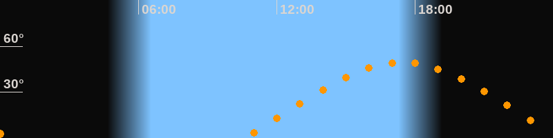 | Höchster Stand (Kulmination) | 17:25 Uhr (h = 49,6°) |