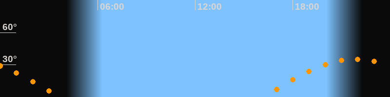 | Aufgang | 16:09 Uhr im Osten (αAz = 95,6°) |