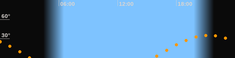 | Untergang | 03:06 Uhr im Westen (αAz = 264,4°) |