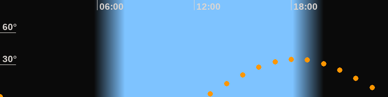| Höchster Stand (Kulmination) | 18:18 Uhr (h = 35,3°) |