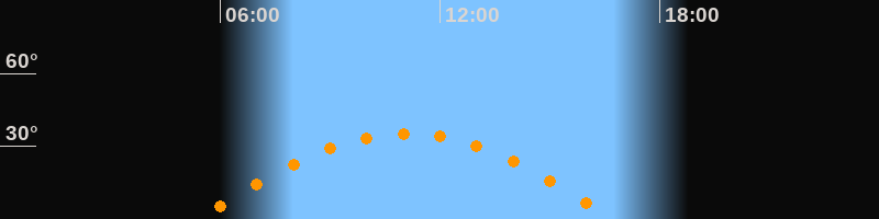 | Höchster Stand (Kulmination) | 11:04 Uhr (h = 35,3°) |