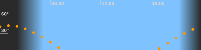 | Aufgang | 18:38 Uhr im Osten (αAz = 81,9°) |
