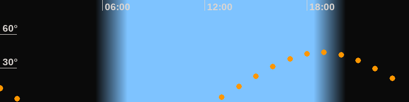 | Aufgang | 12:28 Uhr im Osten (αAz = 81,9°) |
