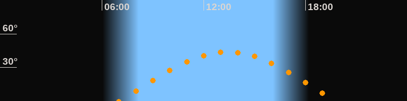 | Höchster Stand (Kulmination) | 13:24 Uhr (h = 44°) |