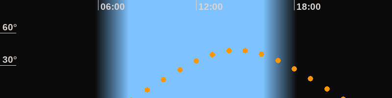 | Höchster Stand (Kulmination) | 14:32 Uhr (h = 44°) |