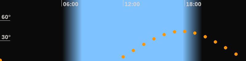 | Höchster Stand (Kulmination) | 17:43 Uhr (h = 44°) |
