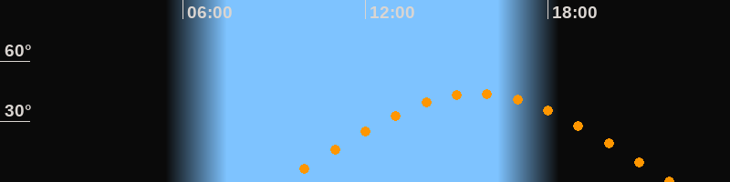 | Höchster Stand (Kulmination) | 15:40 Uhr (h = 44°) |