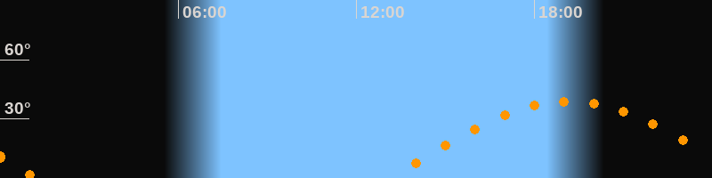 | Aufgang | 13:09 Uhr im Osten (αAz = 89,9°) |
