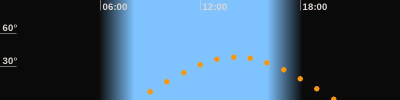 | Höchster Stand (Kulmination) | 14:09 Uhr (h = 38,9°) |