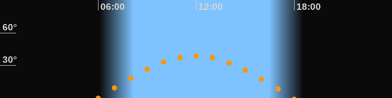 | Höchster Stand (Kulmination) | 11:57 Uhr (h = 38,9°) |