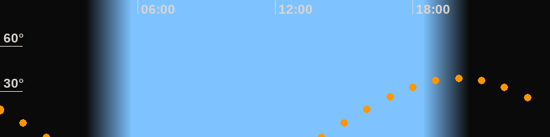 | Untergang | 02:02 Uhr im Westen (αAz = 270,1°) |