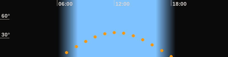 | Aufgang | 06:09 Uhr im Osten (αAz = 89,9°) |