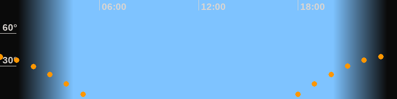 | Untergang | 05:31 Uhr im Westen (αAz = 270,1°) |