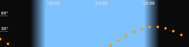 | Aufgang | 13:38 Uhr im Osten (αAz = 89,9°) |