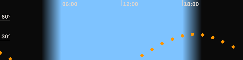 | Höchster Stand (Kulmination) | 19:11 Uhr (h = 38,9°) |