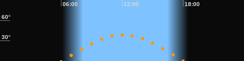 | Höchster Stand (Kulmination) | 12:03 Uhr (h = 38,9°) |