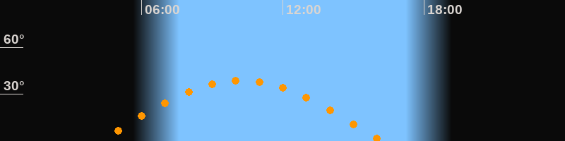| Höchster Stand (Kulmination) | 10:13 Uhr (h = 38,9°) |