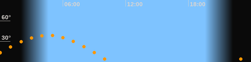 | Untergang | 10:32 Uhr im Westen (αAz = 270,1°) |