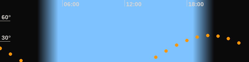 | Untergang | 02:17 Uhr im Westen (αAz = 270,1°) |