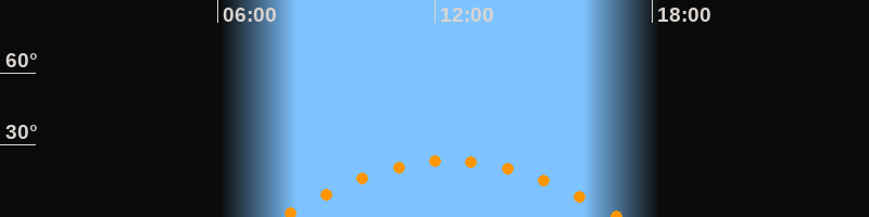 Höchster Stand (Kulmination)12:25 Uhr (h = 23,5°)