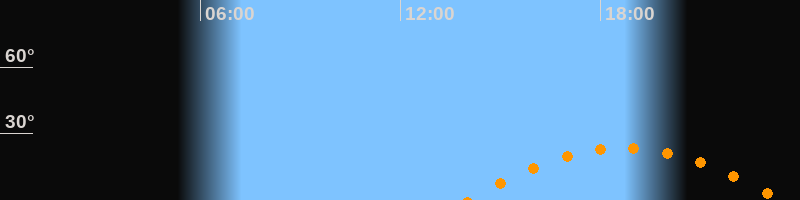 Höchster Stand (Kulmination)18:42 Uhr (h = 23,5°)