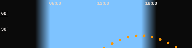Höchster Stand (Kulmination)17:35 Uhr (h = 23,5°)
