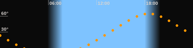 | Höchster Stand (Kulmination) | 18:28 Uhr (h = 64,4°) |