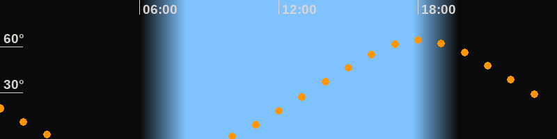 | Höchster Stand (Kulmination) | 18:04 Uhr (h = 64,4°) |