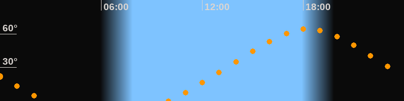 | Höchster Stand (Kulmination) | 18:17 Uhr (h = 64,4°) |