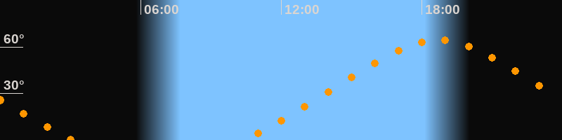 | Höchster Stand (Kulmination) | 18:42 Uhr (h = 64,4°) |