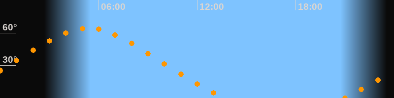 | Höchster Stand (Kulmination) | 05:20 Uhr (h = 64,4°) |