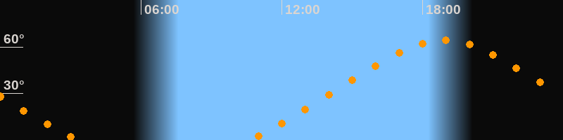 | Höchster Stand (Kulmination) | 18:55 Uhr (h = 64,4°) |