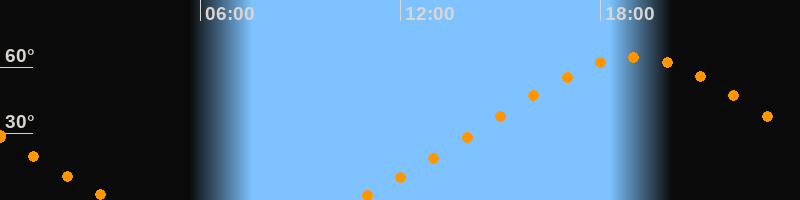 | Höchster Stand (Kulmination) | 19:00 Uhr (h = 64,4°) |