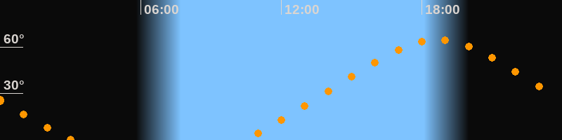 | Höchster Stand (Kulmination) | 18:40 Uhr (h = 64,4°) |