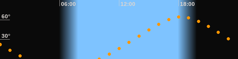 | Höchster Stand (Kulmination) | 18:18 Uhr (h = 64,4°) |
