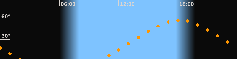 | Höchster Stand (Kulmination) | 18:08 Uhr (h = 59,5°) |