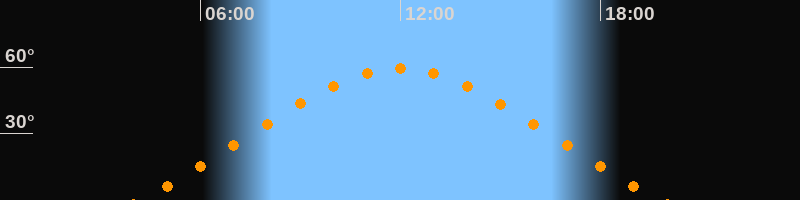 | Höchster Stand (Kulmination) | 11:59 Uhr (h = 59,5°) |