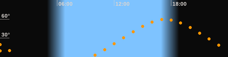 | Höchster Stand (Kulmination) | 17:23 Uhr (h = 59,5°) |