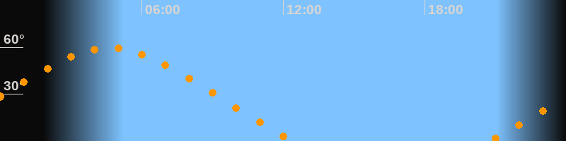 | Höchster Stand (Kulmination) | 04:38 Uhr (h = 59,5°) |