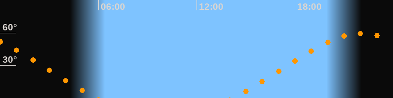 | Höchster Stand (Kulmination) | 22:01 Uhr (h = 59,5°) |