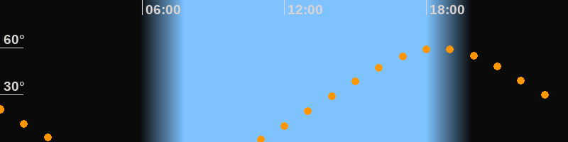 | Höchster Stand (Kulmination) | 18:32 Uhr (h = 59,5°) |