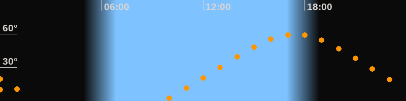 | Höchster Stand (Kulmination) | 17:25 Uhr (h = 59,5°) |