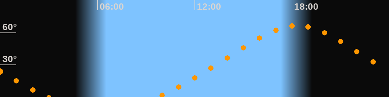 | Höchster Stand (Kulmination) | 18:18 Uhr (h = 66,6°) |
