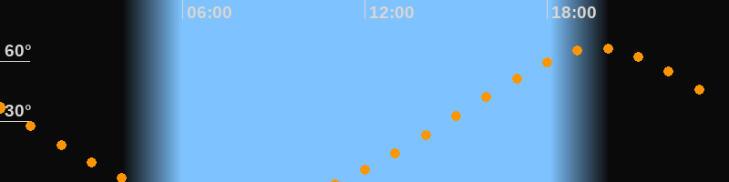| Höchster Stand (Kulmination) | 19:42 Uhr (h = 66,6°) |