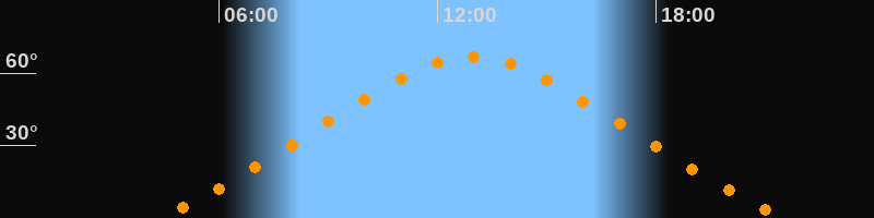 | Höchster Stand (Kulmination) | 12:57 Uhr (h = 66,6°) |