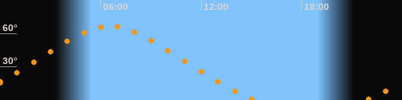 | Höchster Stand (Kulmination) | 06:31 Uhr (h = 66,6°) |