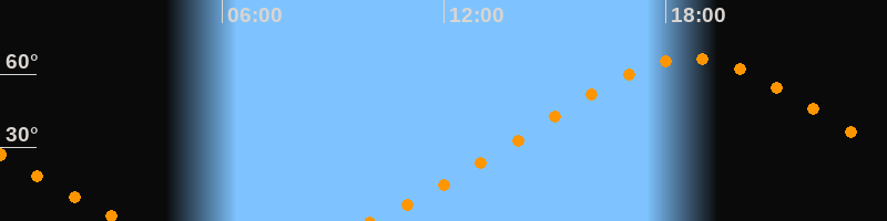 | Höchster Stand (Kulmination) | 18:40 Uhr (h = 66,6°) |